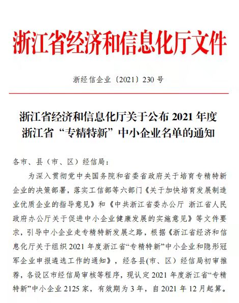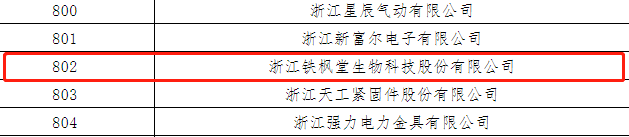 近日,浙江省经济和信息化厅公布了2021年度浙江省”专精特新”中小企业名单。浙江铁枫堂生物科技股份有限公司被列入浙江省“专精特新”中小企业名单。